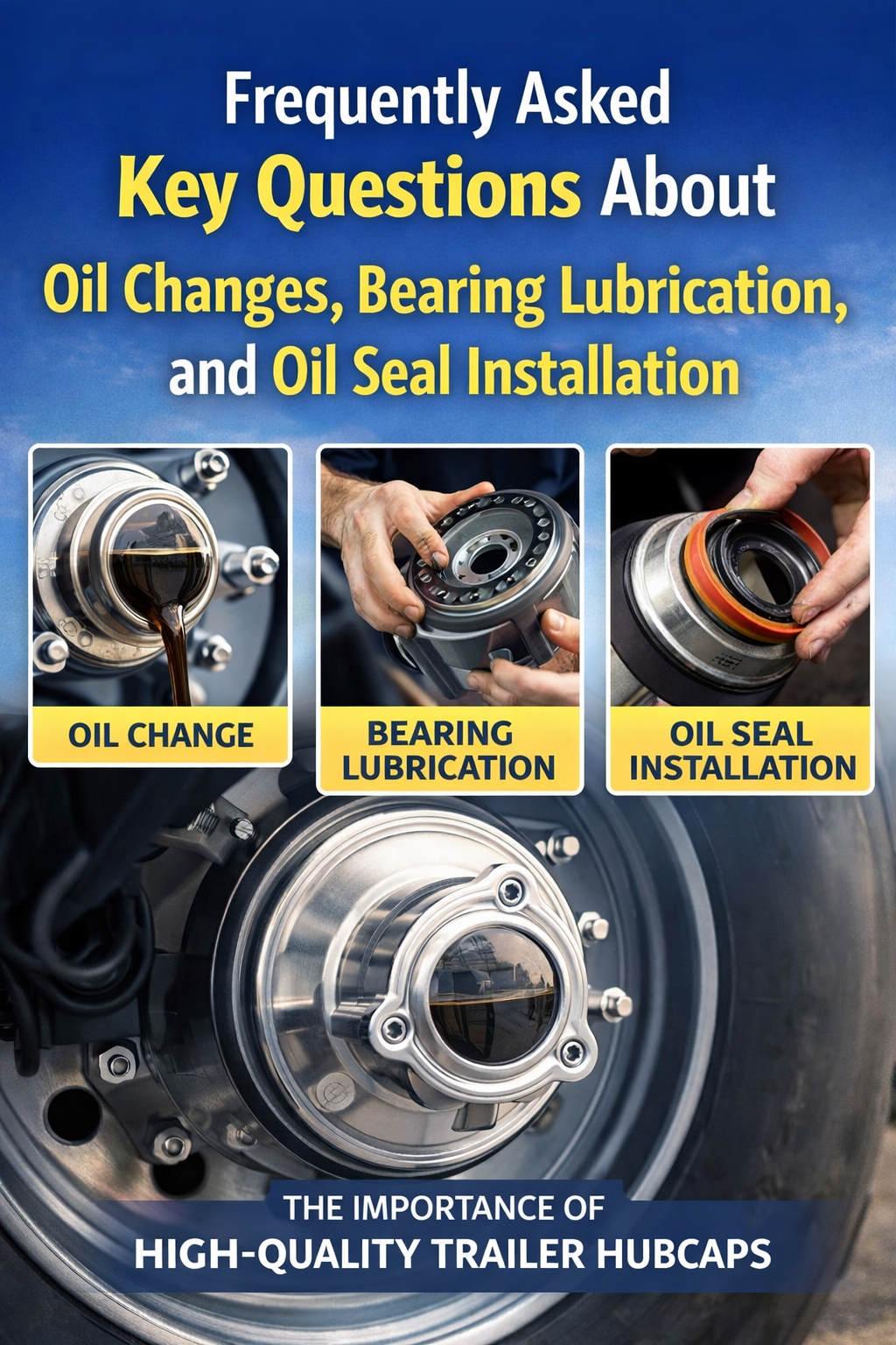 Oil changes, bearing lubrication, and oil seal installation may seem like routine maintenance tasks, but they have a direct impact on safety, reliability, and operational efficiency. When combined with high-quality Trailer hubcaps, these practices form a complete protection system for your wheel assemblies.